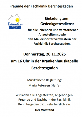 In der Krankenhauskapelle konnten die Freunde der Fachklinik Berchtesgaden e.V. vertreten durch Dr. Ursula Reichelt (3.v.l.) und Hermann Lochschmied (5.v.l.) ihre traditionelle Maiandacht feiern.